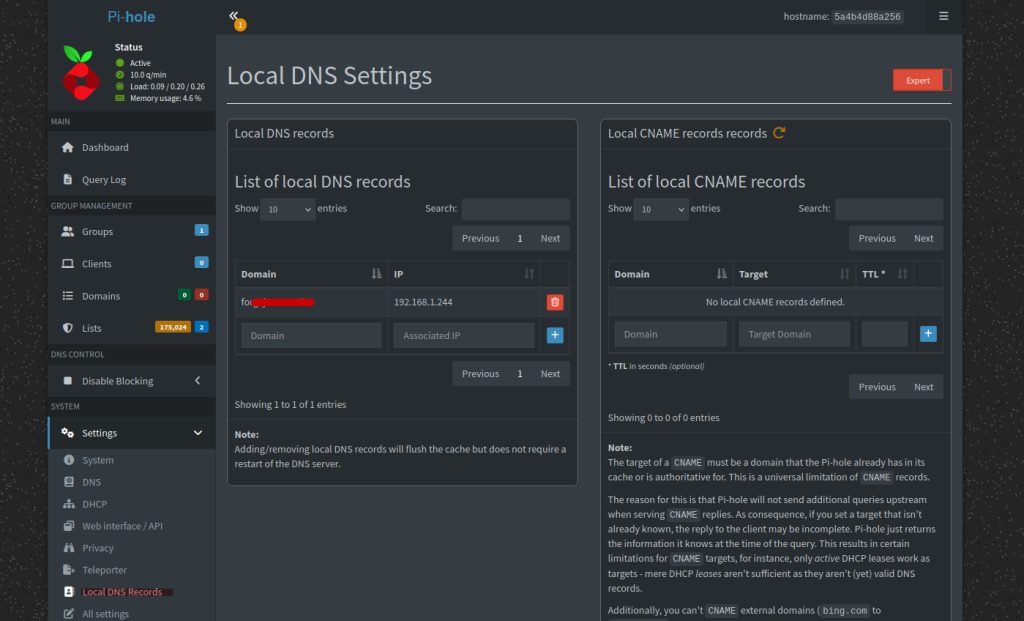 PiHole の ローカル DNS レコードで独自ドメインを内向けに設定した (つまり NASの 192.168.1.244 を独自ドメインの FQDN にした)。