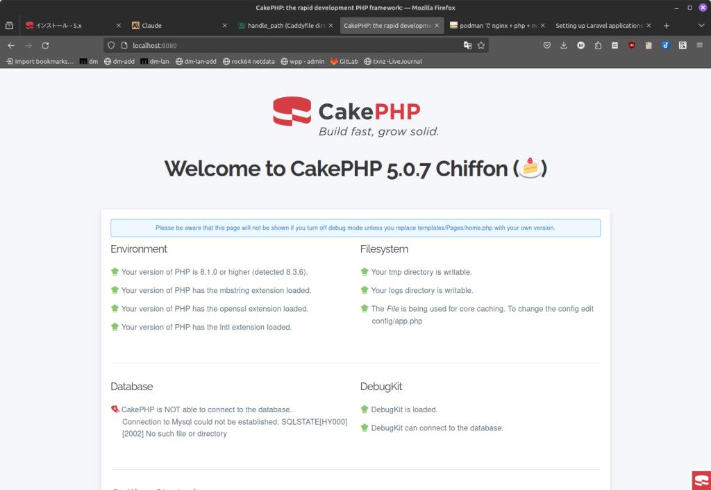 前回の続きです。php-fpm コンテナに CakePHP5 をインストールできたのでいよいよ CaddyServer を入れます。