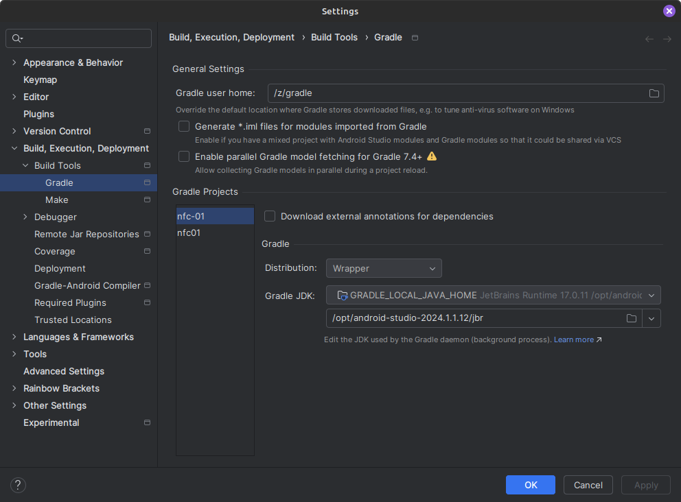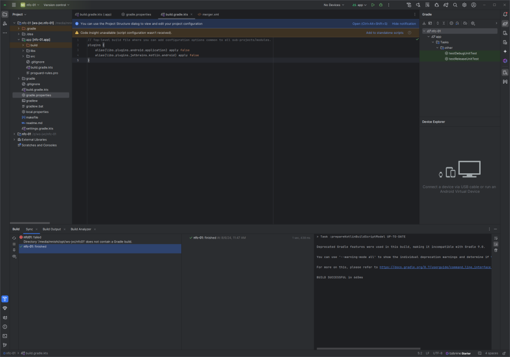 Android Studio をうろうろしていると全体の設定に変更する前の nfc01 がありました。