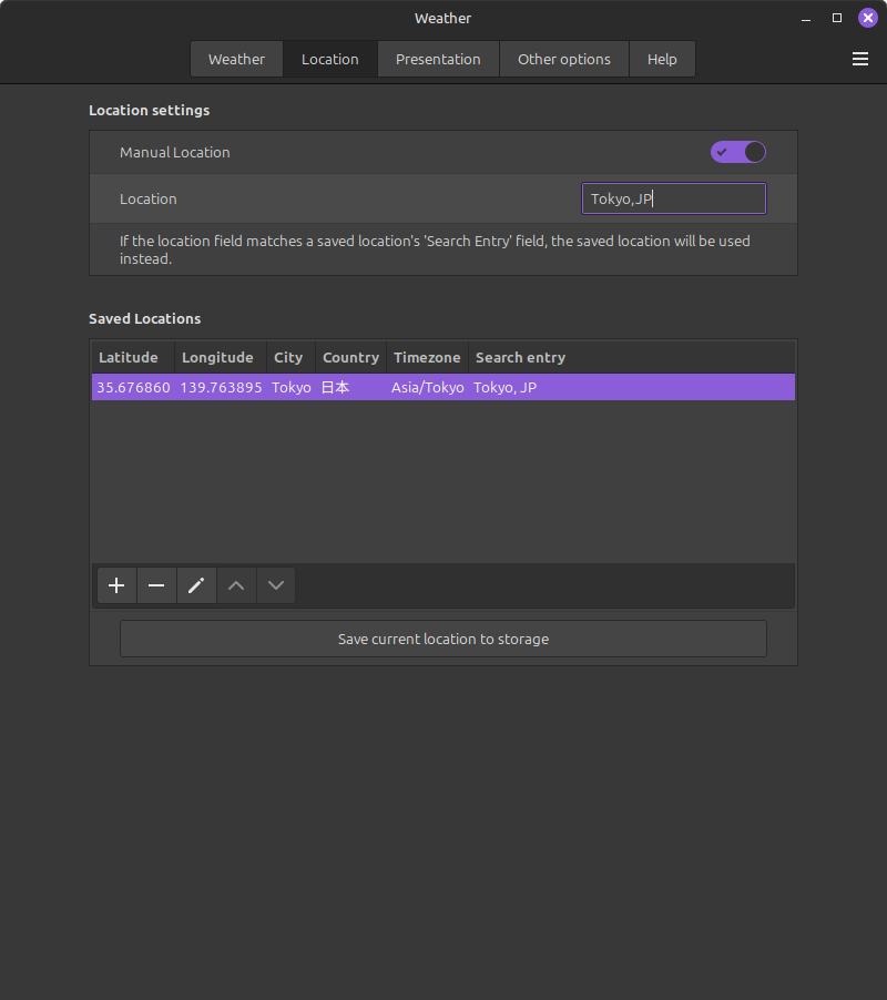 Location に Tokyo, JP のように表示する場所を設定します。市単位でも検索に引っかかることがあるので色々やってみてください。
