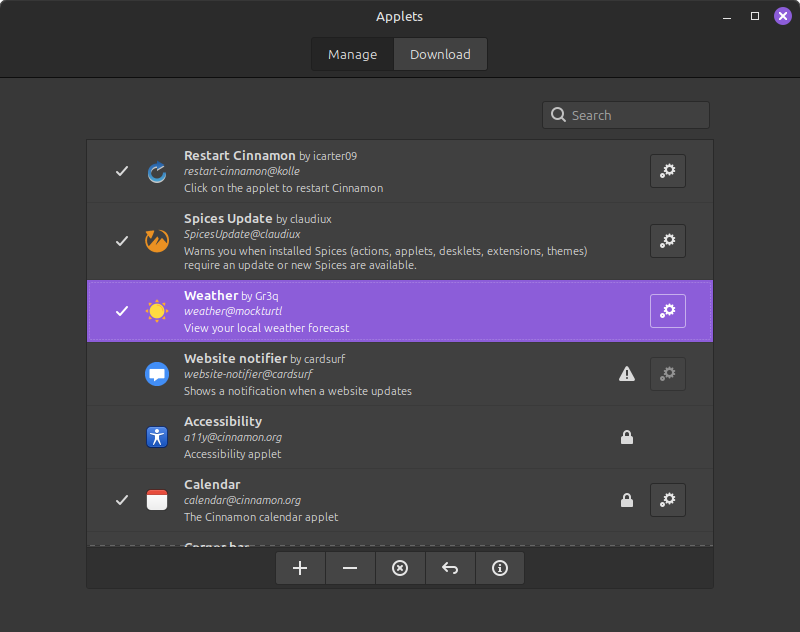 というわけで LM22 というか cinnamon に天気予報を表示する小ネタです。