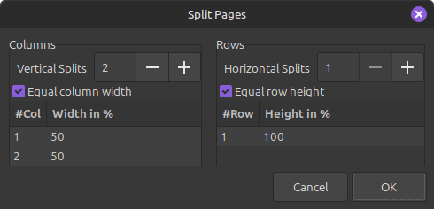 メニューから Edit > Split Pages に進みます。